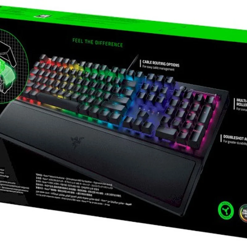 Відчуйте різницю Ім'я, з якого все почалося, повертається, щоб підтвердити своє панування. Відчуйте різницю з Razer BlackWidow V3 - першою та най легендарнішою механічною ігровою клавіатурою, оснащеною новими, покращеними функціями, включаючи всесвітньо відомі перемикачі. Прозорий корпус перемикачів Повністю прозорий дизайн перемикачів забезпечує яскравіше RGB підсвічування, щоб показати справжню пишність можливостей Razer Chroma RGB - від глибоких налаштувань освітлення до повного занурення, оскільки підсвічування динамічно реагує на більш ніж 150 інтегрованих ігор. ABS ковпачки клавіш подвійного лиття Використовуючи подвійне лиття, щоб маркування ніколи не стиралося, ковпачки клавіш цієї бездротової клавіатури також мають дуже товсті стінки, що робить їх надзвичайно міцними, щоб витримувати тривале багаторазове використання. Алюмінієвий корпус На додаток до міцних клавіш, верхній каркас Razer BlackWidow V3 досить міцний, щоб витримувати довгий годинник інтенсивного регулярного використання, і має чисту матову поверхню.