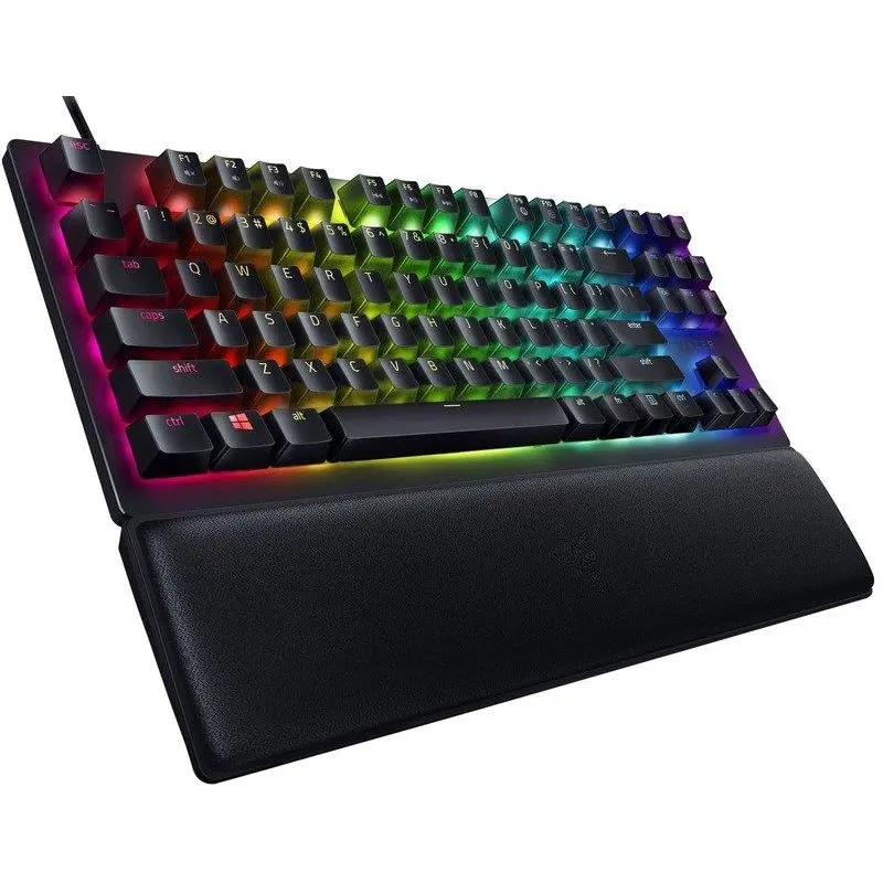 RAZER HUNTSMAN V2 TKL НІЧОГО ЗАЙВОГО. ТІЛЬКИ ПРОДУКТИВНІСТЬ Клавіатура з неперевершеною швидкістю відгуку ще ніколи не була такою стрункою. Зустрічайте Razer Huntsman V2 TKL — оптичну ігрову клавіатуру без цифрового блоку, зі зниженим шумом, практично нульовою затримкою вхідного сигналу, що оснащена різними висококласними функціями. Компактний форм-фактор цієї клавіатури поєднується з її повнорозмірною функціональністю. ОПТИЧНІ ПЕРЕМИКАЧІ RAZER Для спрацьовування зі швидкістю світла Вони швидші, легші та міцніші традиційних механічних перемикачів, а також підтримують частоту опитування до 8000 Гц для зниження затримки вхідного сигналу. Доступна в двох варіантах: з лінійними та клацаючими перемикачами. КЛАЦАЮЧІ ОПТИЧНІ ПЕРЕМИКАЧІ RAZER |Clicky Optical Switch (Purple). Для блискавичного спрацьовування з чіткою і тактильним зворотним зв’язком. Насолоджуйтесь швидким і чітким ходом клавіш, що приємно клацають і мають меншу вагу в порівнянні з традиційними механічними перемикачами. Крім того, вони підтримують частоту опитування до 8000 Гц для зниження вхідної затримки сигналу. ЛІНІЙНІ ОПТИЧНІ ПЕРЕМИКАЧІ RAZER Gen-2 |Linear Optical Switch (Red). Для блискавичного спрацьовування з тихим і плавним ходом клавіш. Перемикачі з плавним і чітким спрацьовуванням поліпшені звукопглинаючими прокладками, що роблять процес друку ще тихіше. Крім того, перемикачі стали ще чутливіший завдяки підтримці частоти опитування до 8000 Гц. НАДШВИДКЕ СПРАЦЬОВУВАННЯ Більш швидкі дії Завдяки надшвидкому спрацьовуванню і кращому в галузі часу відгуку 0,2 мс наші оптичні перемикачі 2-го покоління з Razer HyperPolling в 3 рази швидші, ніж магнітні перемикачі. DOUBLESHOT PBT КЕЙКАПИ Ці ковпачки твердіше і міцніше АБС-пластика. Їх зносостійка поверхня не зітреться до блиску, а позначення на клавішах будуть вічно новими завдяки двокомпонентному процесу лиття. ЗВУКОПОГЛИНАЮЧА ПІНА Для зниження шуму клавіатури Усередині корпусу клавіатури Razer Huntsman V2 є шар особливої піни, щоб поглинати брязкітшум, що може виникати при сильному натисканні на клавіші. ЗНІМНИЙ КАБЕЛЬ TYPE-C Для більш простого підключення та зберігання Готуватися до LAN-вечірок і змагань можна без зайвих зусиль: просто дістаньте клавіатуру, підключіть та грайте. Кріплення для кабелю надійно фіксує його під час гри. ЕРГОНОМІЧНА ПІДСТАВКА ПІД ЗАП’ЯСТЯ Для комфортної гри протягом тривалого часу Міцна підставка під зап’ястя ідеально рівно кріпиться до клавіатури і знижує навантаження на зап’ястя, щоб вони менше втомлювалися під час тривалої гри. ГІБРИДНА УБУДОВАНА ПАМ’ЯТЬ ТА ХМАРНЕ СХОВИЩЕ Для доступу до особистих налаштувань в будь-якому місці Маючи можливість зберігати до 5 профілів у вбудованій пам’яті клавіатури і застосовувати їх в будь-який момент, ви завжди будете готові до бою. Крім того, з цією клавіатурою ви можете створити власну бібліотеку макросів і налаштувань в хмарному сховищі.