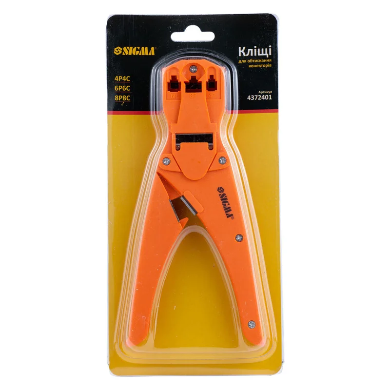 Кліщі для обтиску телекомунікаційних конекторів 4Р4С, 6Р6С, 8Р8С SIGMA (4372401)
