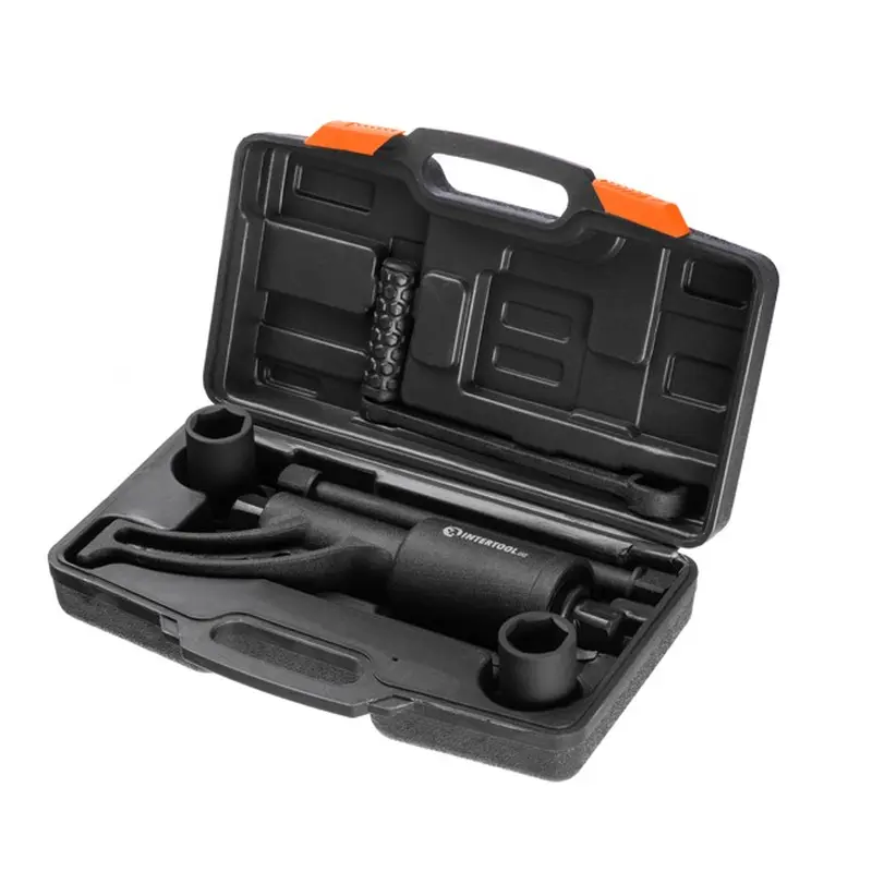 Міцний пластиковий кейс забезпечує зручне транспортування та безпечне зберігання всього набору. Кейс для роторного ключа оснащений замками для додаткової безпеки зі вбудованою ручкою для зручного перенесення, щоб ви змогли замінити шини у будь-який час та в будь-якому місці.