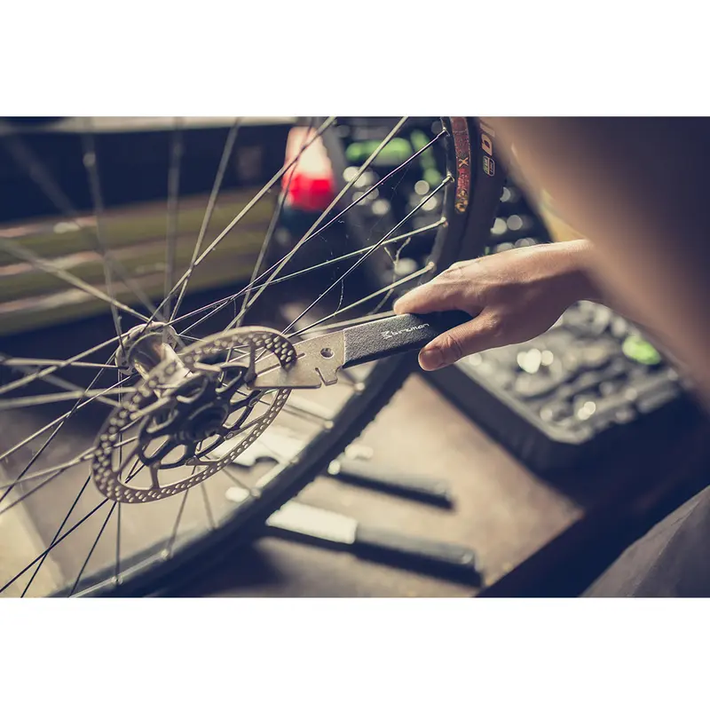 Rotor Truing Fork - ключ для выравнивания тормозных роторов, имеет две лазерные прорези, гарантирующие различные соотношения усилия и обхвата ротора. Устройство обеспечивает точный захват для более комфортного обслуживания тормоза.