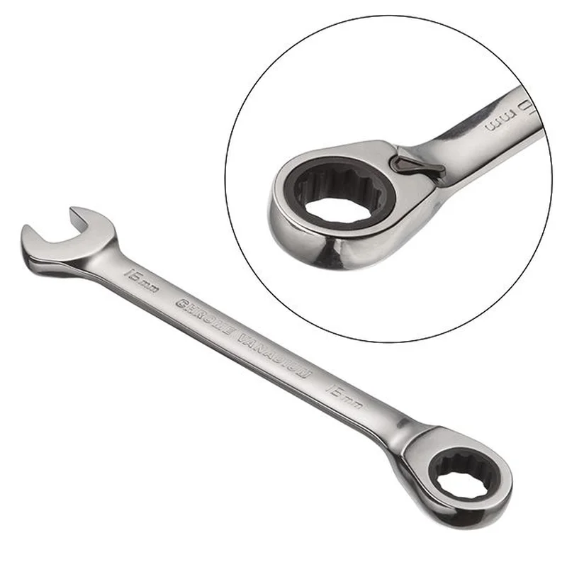 Комбінований ключ з тріскачкою та реверсом, розміром 16 мм призначений для монтажу та демонтажу різьбових з'єднань гайок та болтів.