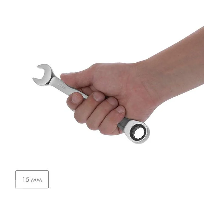 Ключ комбінований з тріскачкою 15 мм Cr-V; PROF DIN3113 INTERTOOL XT-1355