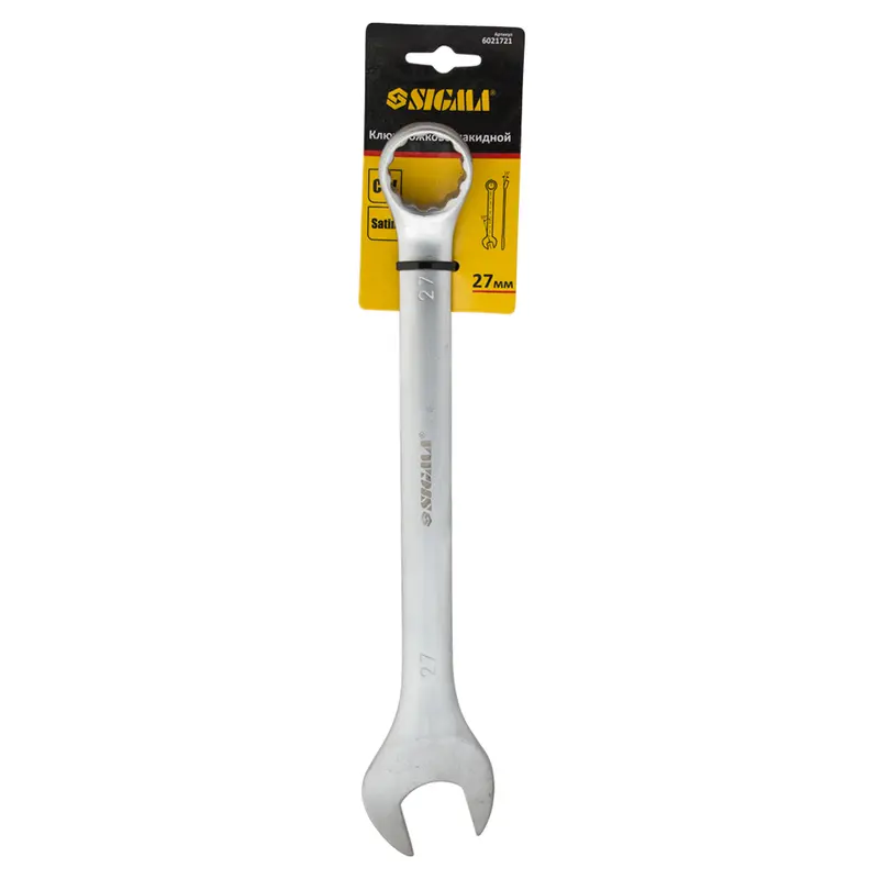 Ключ ріжково-накидний 27мм CrV satine з підвісом SIGMA (6021721)