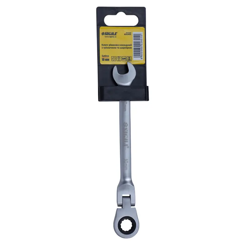 Ключ ріжково-накидний трещеточний з шарніром 10мм CrV satine SIGMA (6022601)