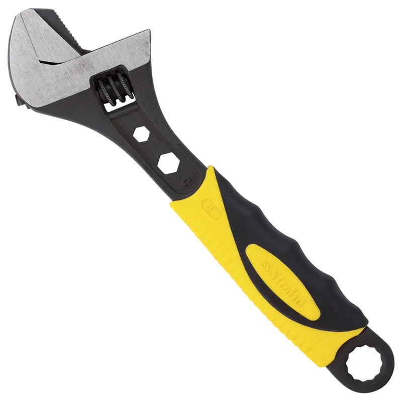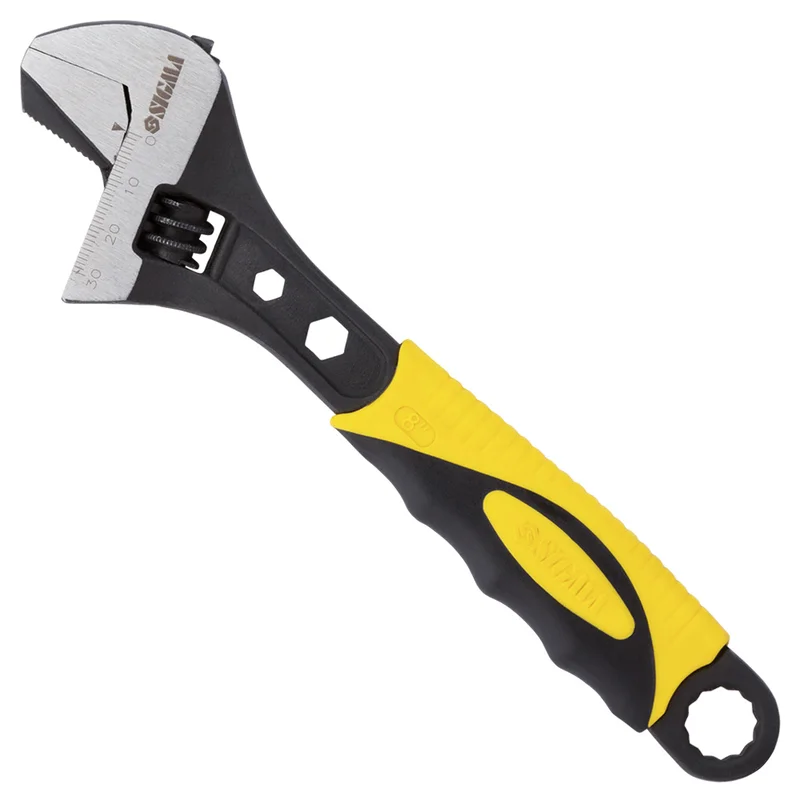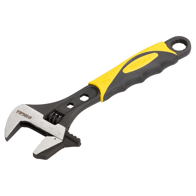 Ключ розвідний з переставною губкою 200мм, 0-30мм CrV (TPR) Sigma (4100921) призначений для відгвинчування і загвинчування гайок, болтів, гвинтів та інших різьбових з'єднань. Зручний при сантехнічних роботах, ремонті автомобілів і велосипедів. Виготовлений із високоякісної хромованадієвої сталі з антикорозійним покриттям. Має рухому переставну губку, зазубрену з одного боку, завдяки чому може використовуватися як трубний ключ. На губках ключів нанесено міліметрову шкалу для регулювання ширини захоплення. Двокомпонентна ергономічна ручка зручно лежить у руці. Ребриста поверхня ручки не дозволяє ключу вислизнути з руки під час роботи. Ключ оснащений отвором для підвішування.