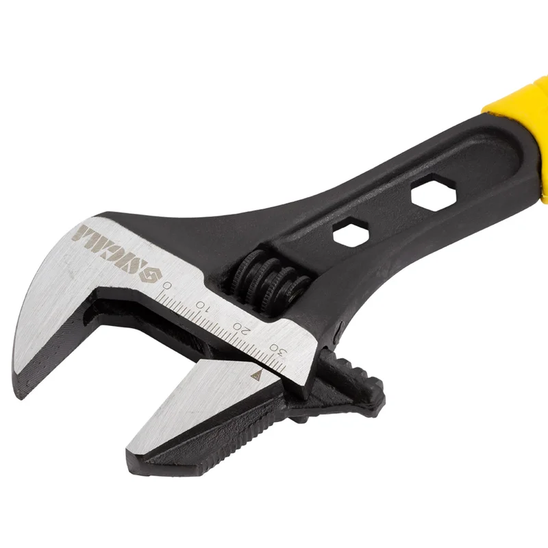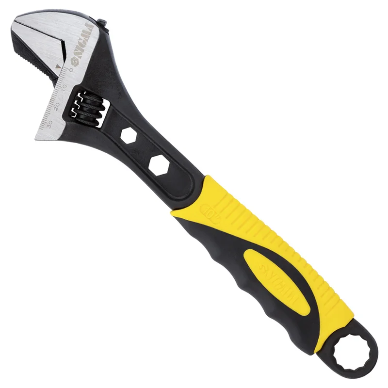 Ключ розвідний з переставною губкою 250мм, 0-35мм CrV (TPR) Sigma (4100931) призначений для відгвинчування і загвинчування гайок, болтів, гвинтів та інших різьбових з'єднань. Зручний при сантехнічних роботах, ремонті автомобілів і велосипедів. Виготовлений із високоякісної хромованадієвої сталі з антикорозійним покриттям. Має рухому переставну губку, зазубрену з одного боку, завдяки чому може використовуватися як трубний ключ. На губках ключів нанесено міліметрову шкалу для регулювання ширини захоплення. Двокомпонентна ергономічна ручка зручно лежить у руці. Ребриста поверхня ручки не дозволяє ключу вислизнути з руки під час роботи. Ключ оснащений отвором для підвішування.