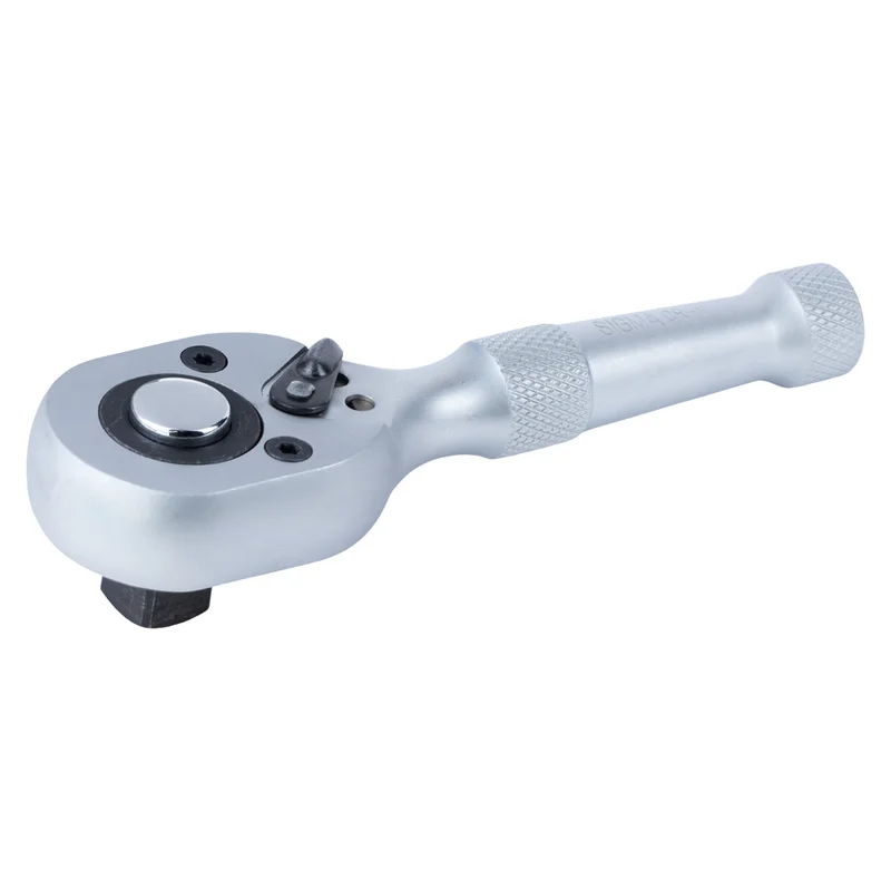 Ключ-тріскачка укорочена з металевою ручкою 1/2" 140мм 45T CrV SIGMA (6050231) - це необхідний інструмент при виконанні робіт з різьбовими з'єднаннями, який повинен бути в арсеналі кожного автослюсаря і майстри. Даний інструмент дозволяє виконувати монтаж / демонтаж різьбових з'єднань з допомогою біт з адаптерами або за допомогою торцевих головок.