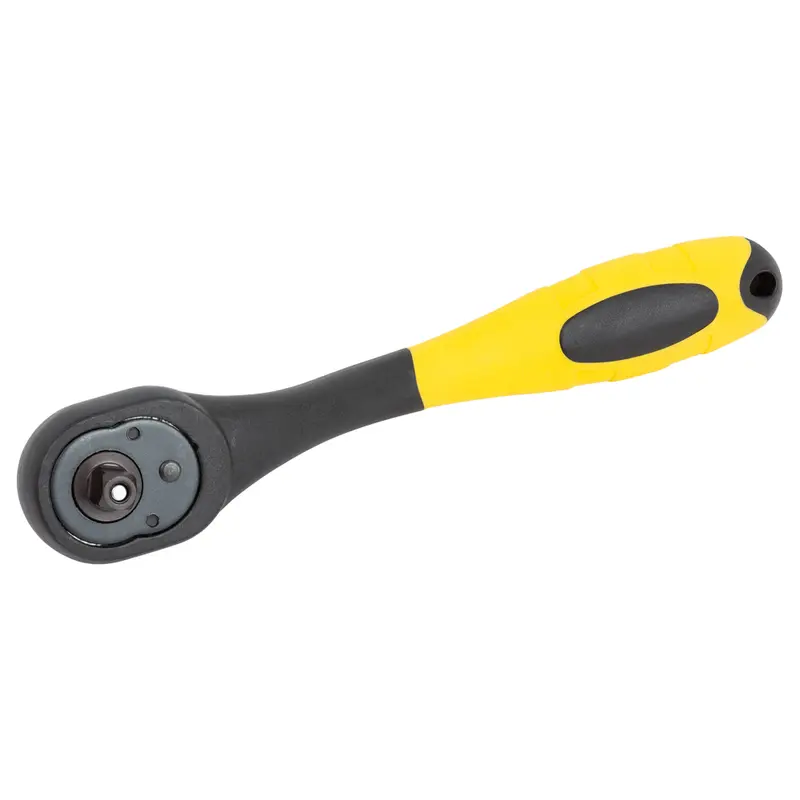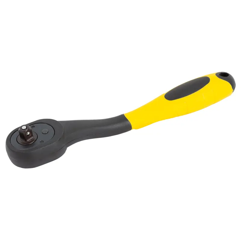 Тріскачка має прапорцевий перемикач, що дає можливість виконувати роботи з різьбовими з'єднаннями з правої і лівої різьбленням. Кнопка швидкого скидання торцевої головки оптимізує робочий процес, дозволяючи легко і швидко змінювати насадки.