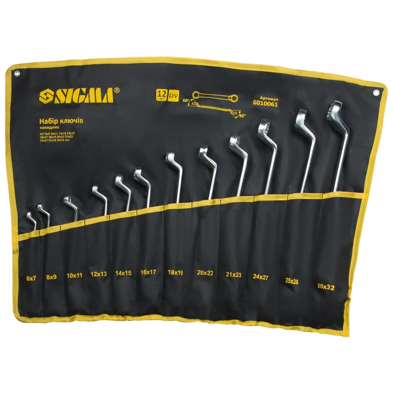 Ключі накидні 12шт 6-32мм CrV satine (тк. Чохол) SIGMA (6010061) є необхідним інструментом при складанні болтових з'єднань, що мають шестигранний профіль.