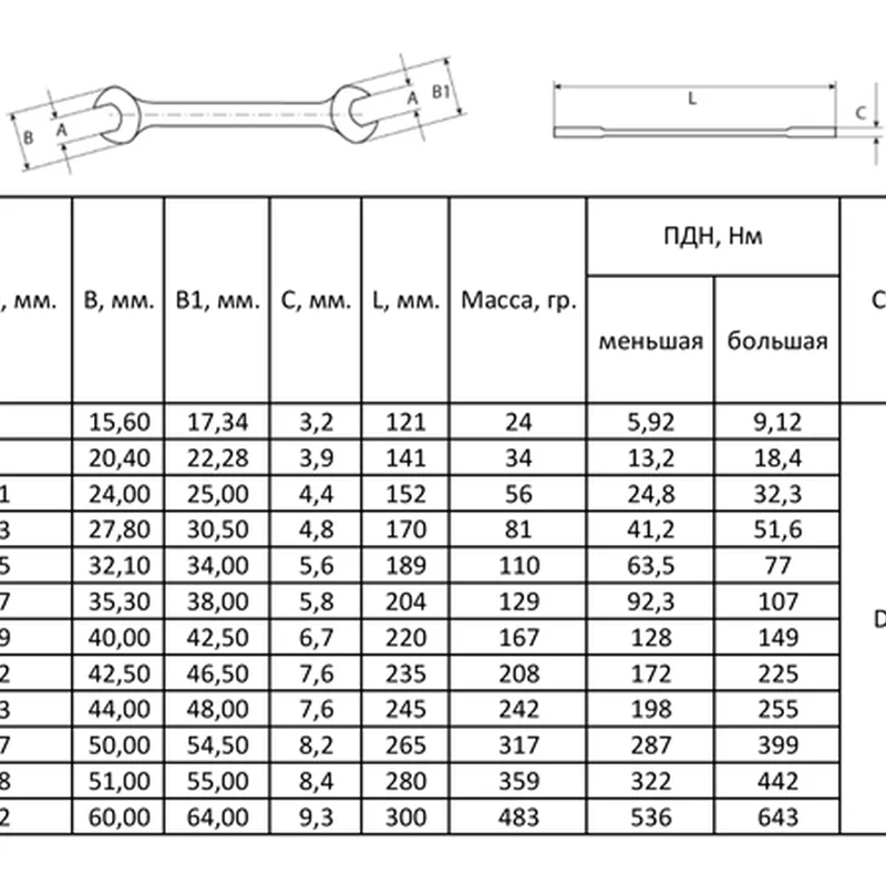 Робоча область ключа повернена під кутом до поздовжньої осі інструменту, що забезпечує більший робочий діапазон в важкодоступних місцях. Головки ключів стандартизовані і має певний розмір, який вказується на рукоятці ключа.