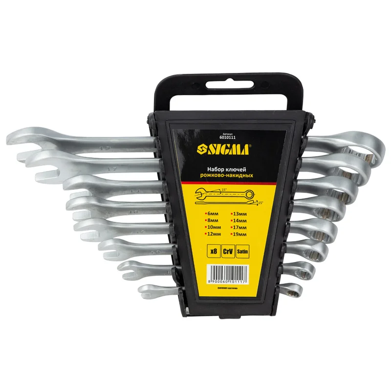 Ключі ріжково-накидні 8шт 6-19мм CrV satine SIGMA (6010111)