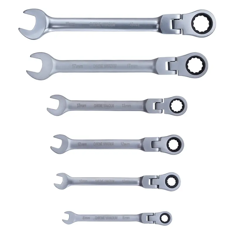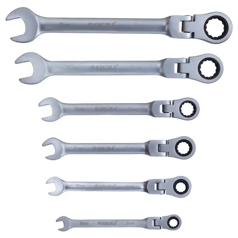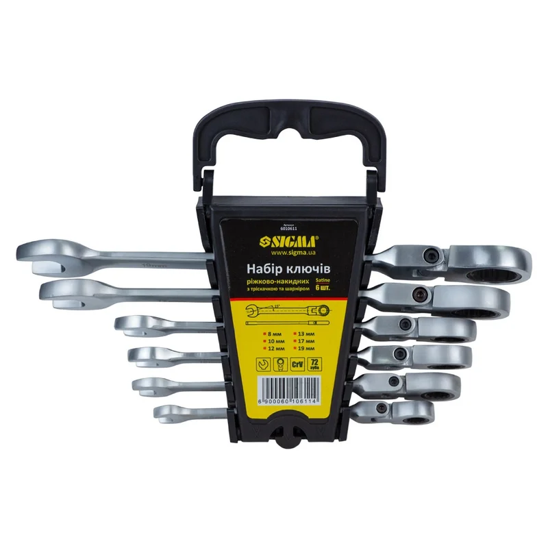 Ключі ріжково-накидні з тріскачкою з шарніром 6шт (8, 10, 12, 13, 17, 19мм) CrV satine SIGMA (6010611)