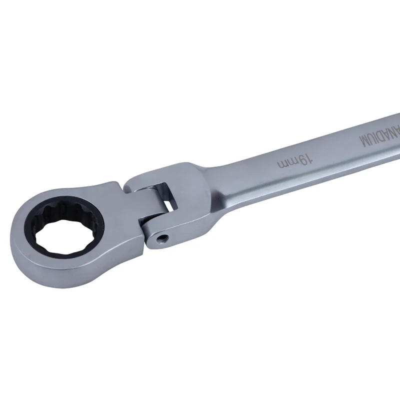 Накидна сторона, завдяки кільцевому будовою, в момент прикладання зусилля дозволяє розподілити навантаження рівномірно. Це знижує ризик «злизати» грань кута. Трещеточний механізм короткого типу дозволяє виконувати роботи в місцях з обмеженим простором.