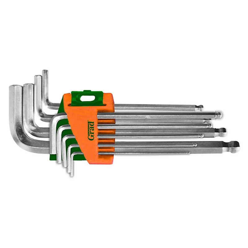 Ключі шестигранні 9шт 1.5-10мм CrV (середні куля) GRAD (4022185) призначені для роботи з кріпленням, оснащеним внутрішнім шестигранним гніздом (HEX).