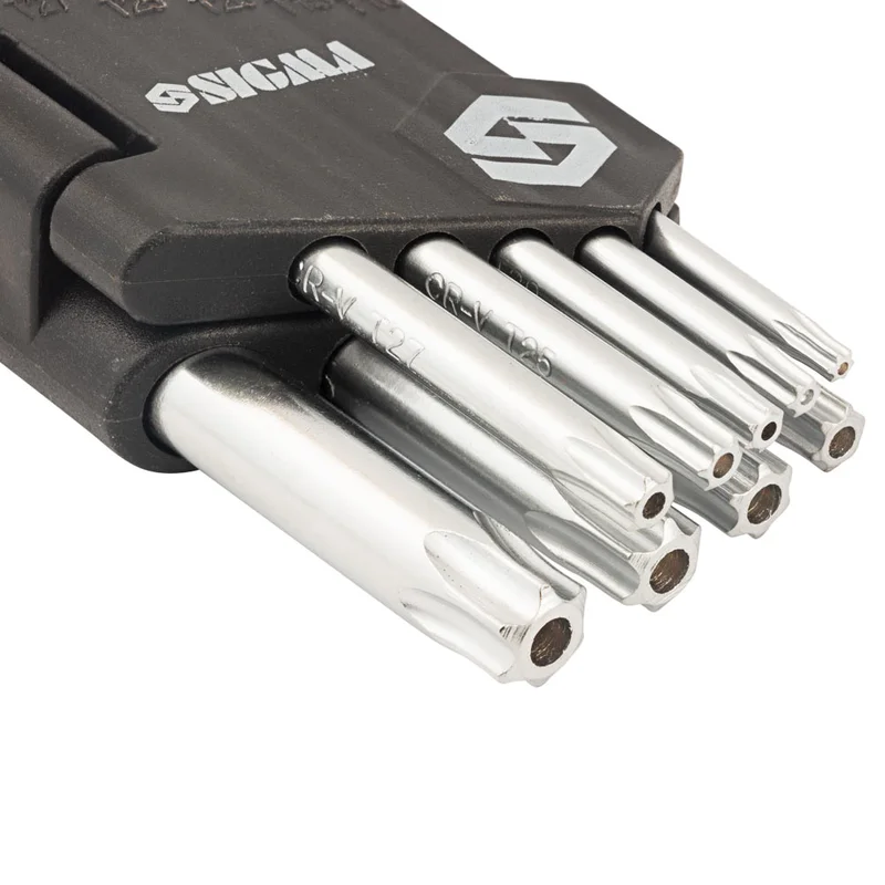Ключі TORX 9шт T10-T50 CrV (короткі з отвором) SIGMA (4022211) виготовлені з хромванадієвої сталі та укомплектовані в зручні пластмасові футляри.