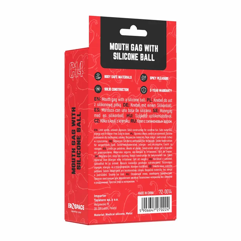 Мягкий шарик изготовлен из высококачественного медицинского силикона, который безопасен для кожи, приятен на ощупь и комфортен даже во время длительного использования. Регулируемый ремешок позволяет легко подогнать кляп под любой размер головы, а надежная застежка гарантирует безопасность и удобство. Металлические детали тщательно обработаны, что делает аксессуар не только функциональным, но и эстетически привлекательным.
