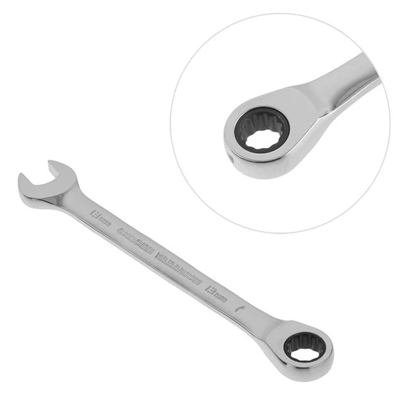 Комбінований ключ з тріскачкою розміром 13 мм призначений для монтажу та демонтажу різьбових з'єднань гайок та болтів.