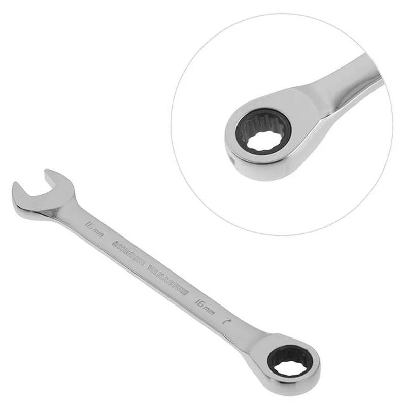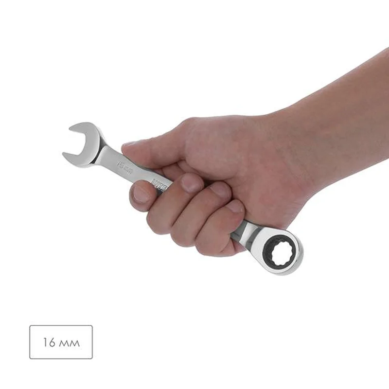 Комбінований ключ з тріскачкою розміром 16 мм призначений для монтажу та демонтажу різьбових з'єднань гайок та болтів.