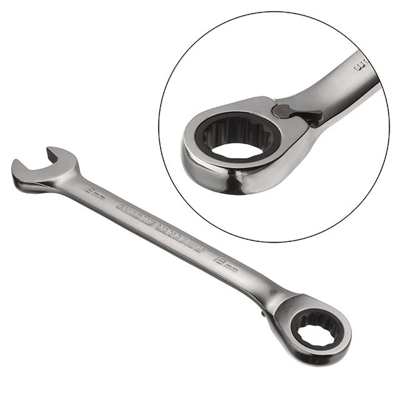 Накидок з храповим механізмом із 72 зубцями забезпечує м'якість ходу та високий крутний момент. Механізм з кроком 5° дозволяє працювати у вузьких та важкодоступних місцях. Також усувається необхідність щоразу надягати ключ на кріплення. Реверс для зручного перемикання напрямку ходу.