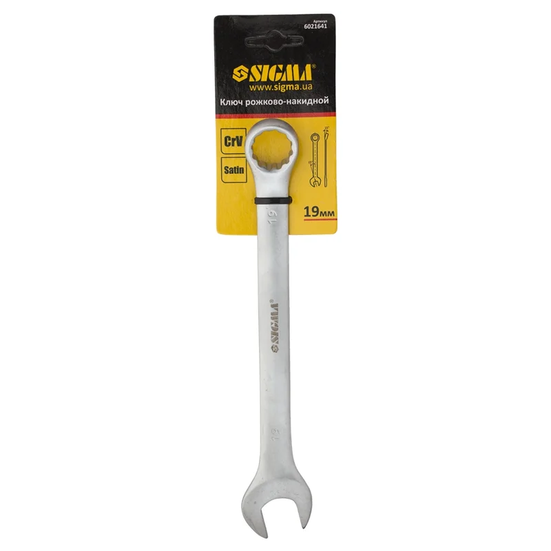 Ключ ріжково-накидний 19мм CrV satine з підвісом SIGMA (6021641)