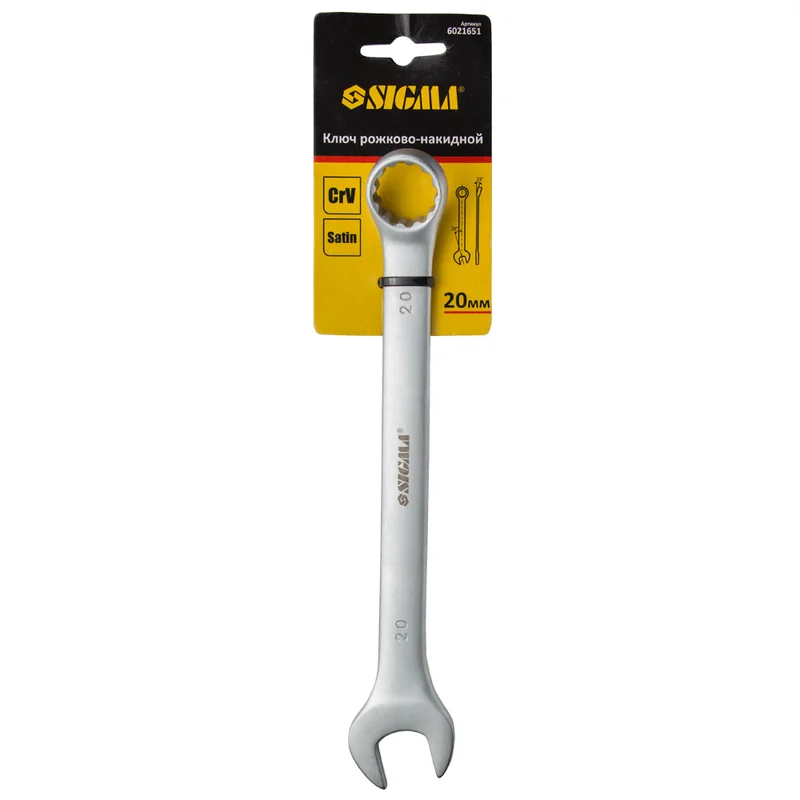 Ключ ріжково-накидний 20мм CrV satine з підвісом SIGMA (6021651)