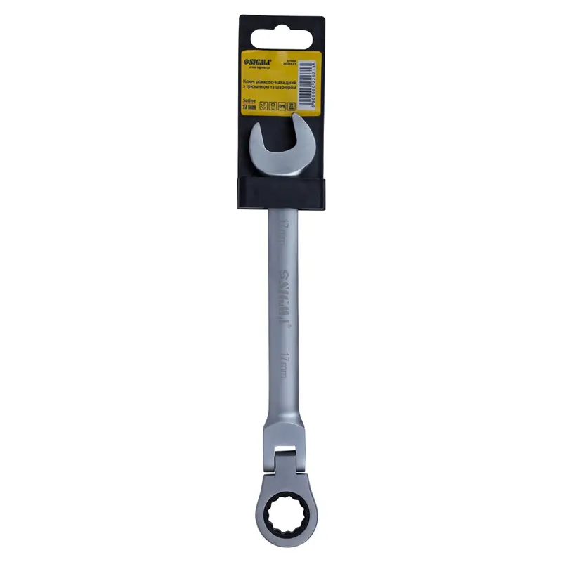 Ключ ріжково-накидний трещеточний з шарніром 17мм CrV satine SIGMA (6022671)