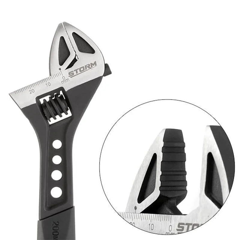Ключ розвідний 200 мм кований, рукоятка TPR, HRC 40 ~ 50, Cr-V STORM INTERTOOL XT-0075