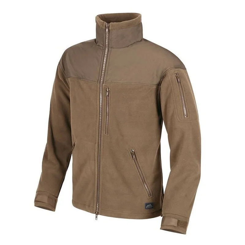 Helikon-Tex® CLASSIC ARMY Jacket - флисовая куртка создана как средний согревающий слой для ношения отдельно или вместе с верхней одеждой. Отлично удерживает тепло, обеспечивает надежную защиту от ветра и лёгкого дождя. Плечи и локти усилены дополнительным слоем крепкого нейлонового материала. Куртка оснащена четырьмя карманами разной величины. Особенности: Воротник-стойка стягивается шоккордом с фиксатором Фронтальная застежка - двухзамковая молния YKK® с термопланкой и защитой подбородка. Два боковых нижних кармана, один нарукавный, один нагрудный карман с отверстием для шнура - застегиваются молниями Плечи и локти укреплены нейлоновыми вставками. Манжеты рукавов регулируются хлястиками на липучках. Низ куртки регулируются шоккордом с фиксаторами