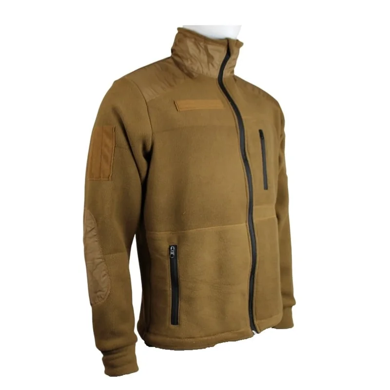 Тактическая флисовая кофта Pancer – крой и материал Флисовая кофта военная Pancer предназначена в качестве дополнительного слоя для сохранения тепла зимой, заменяет верхнюю одежду осенью и весной. Кофты тонкие и легкие, не сковывают движения. Центральная молния и многочисленные карманы обеспечивают комфорт при носке. На локтях и плечах предусмотрено усиление, которое повышает устойчивость к износу. Предусмотрены панели с липучками для шевронов, воротник-стойка для защиты от ветра. Для пошива тактических кофт используют флис, синтетический материал, среди характеристик которого: теплоизолирующие свойства: плетение нитей не пропускает тепло от тела наружу, поддерживая стабильную температуру; ткань пропускает воздух; сохраняет тепло при намокании: влага выводится на внешний слой материала, сохраняя температуру внутри; быстрое высыхание; низкий вес и объем; устойчивость к протиранию, деформациям. Коричневый цвет тактической флисовой кофты Pancer сочетается с военной формой. Военная флисовая кофта Pancer – условия покупки Когда необходима флисовая кофта военная, купить в Pancer можно продукцию украинского производства. Подобрать размер поможет размерная сетка, обработка и отправка заказов осуществляется ежедневно. Компания отправляет тактическую одежду по всей Украине сотрудничая с национальными транспортными компаниями, в Киеве есть самовывоз и курьерская доставка. За каждую покупку на сайте начисляются бонусы, при покупке от 2000 гривен предоставляется скидка.