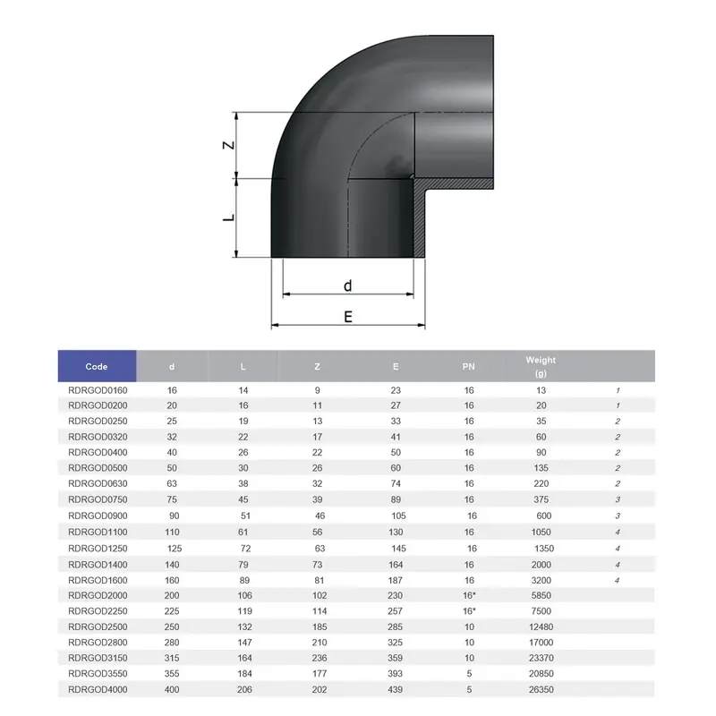 Коліно клейове 90° Effast RDRGOD0630 з непластифікованого полівінілхлориду PVC-U. Виробництво Італія.Вироби з ПВХ підходять для транспортування рідин з максимальною температурою до 60°C. При збільшенні температури робочої рідини граничний тиск знижується.Ціна вказана за одну одиницю.