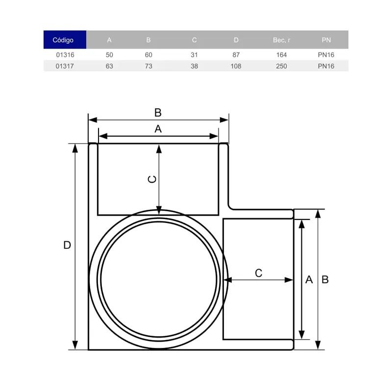 Коліно клейове 90° Hidroten 1001316 з додатковим відведенням з непластифікованого полівінілхлориду PVC-U. Виробництво Іспанія. Вироби із ПВХ підходять для транспортування рідин з максимальною температурою до 60°C. При збільшенні температури робочої рідини граничний тиск знижується.
