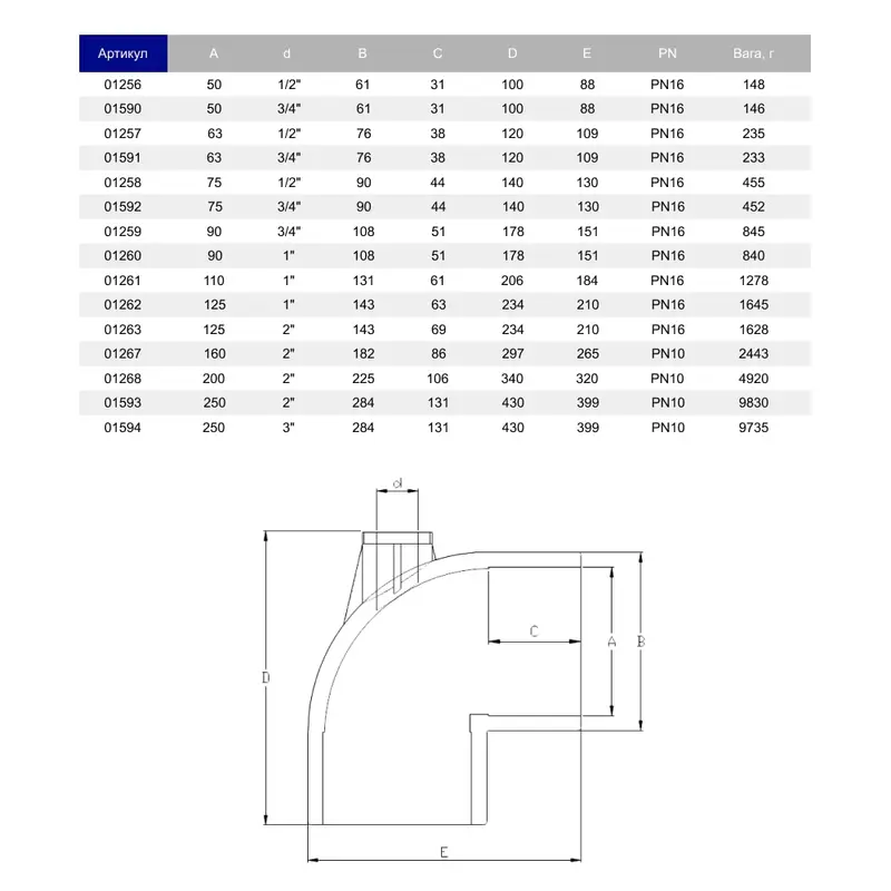 Коліно з металевим кільцем 90° Hidroten 1001257 з непластифікованого полівінілхлориду PVC-U. Виробництво Іспанія. Вироби із ПВХ підходять для транспортування рідин з максимальною температурою до 60°C. При збільшенні температури робочої рідини граничний тиск знижується.