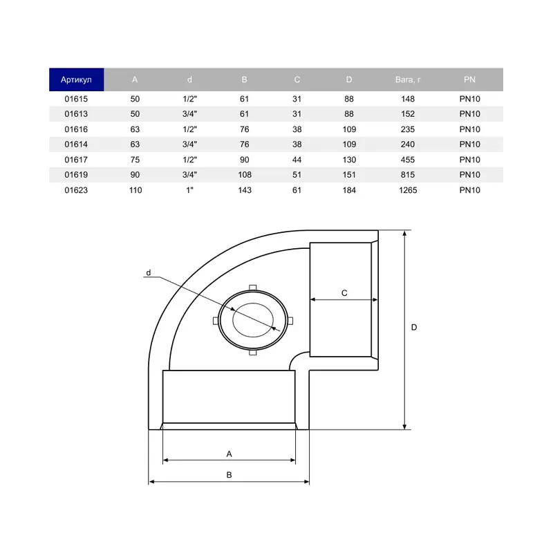 Коліно з металевим кільцем 90° Hidroten 1001615 з непластифікованого полівінілхлориду PVC-U. Виробництво Іспанія. Вироби із ПВХ підходять для транспортування рідин з максимальною температурою до 60°C. При збільшенні температури робочої рідини граничний тиск знижується.