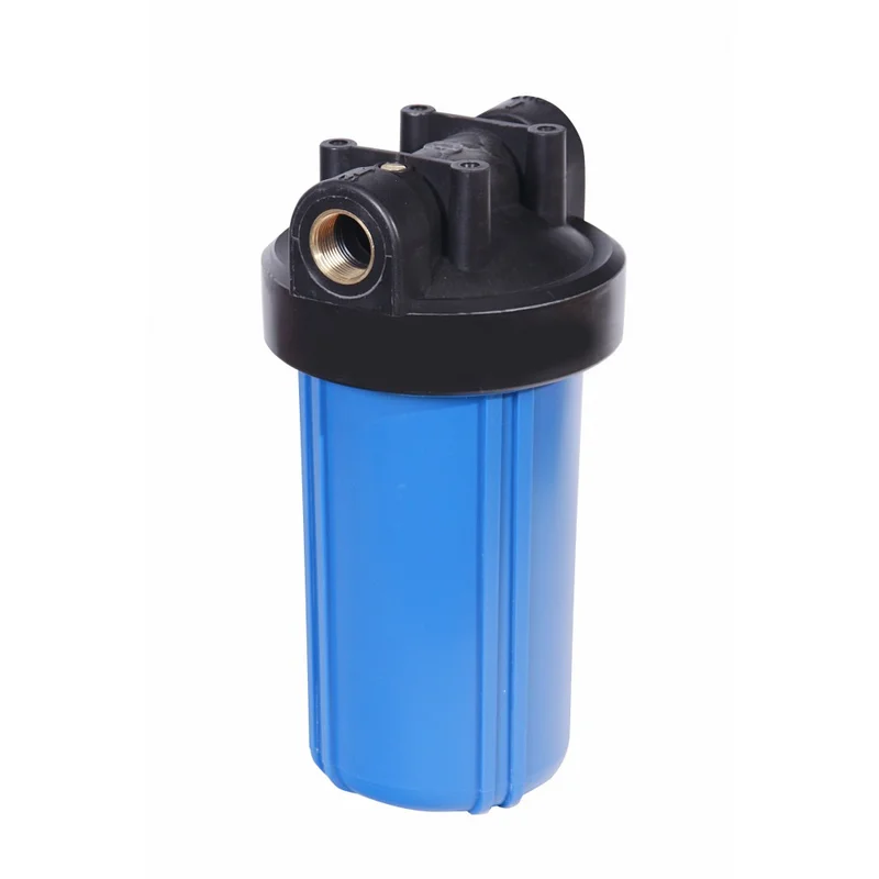 Высокопроизводительный Фильтр Аквакут для домашнего и промышленного использования, состоящий из двух частей, с латунной резьбой и уплотнительным кольцом. Имеют воздушный клапан в виде латунного винта под отвертку для удаления воздуха после замены картриджа.
