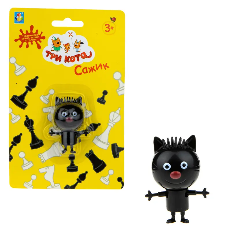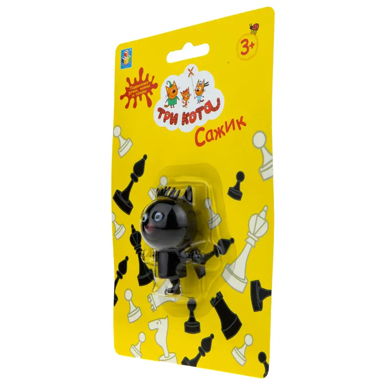 Ігрова фігурка у вигляді всіма улюбленого героя мультсеріалу "Три коти" - Сажика, друга кошенят.Сажок - це кумедне чорне кошеня із сімейства чорних котів. Він життєрадісний та веселий, а ще він великий вигадник і любить розповідати друзям різні страшилки.Фігурка розміром 5,2 см виготовлена з високоякісного та приємного на дотик пластику. Ручки та ніжки фігурки рухливі, а голова крутиться. Тому дитині буде цікаво і зручно грати іграшкою, розігруючи різні ситуації з мультика, або ж вигадуватиме власні пригоди.