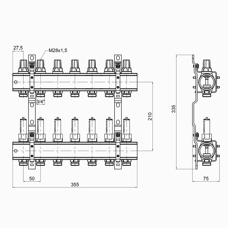 Колектор Icma 1" 7 виходів, з витратомірами №K013