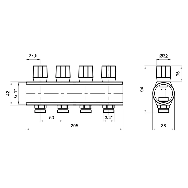 Колектор Icma з регулювальними вентилями 1" 4 виходи №1105 (Blue)