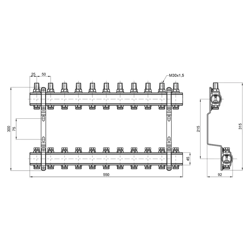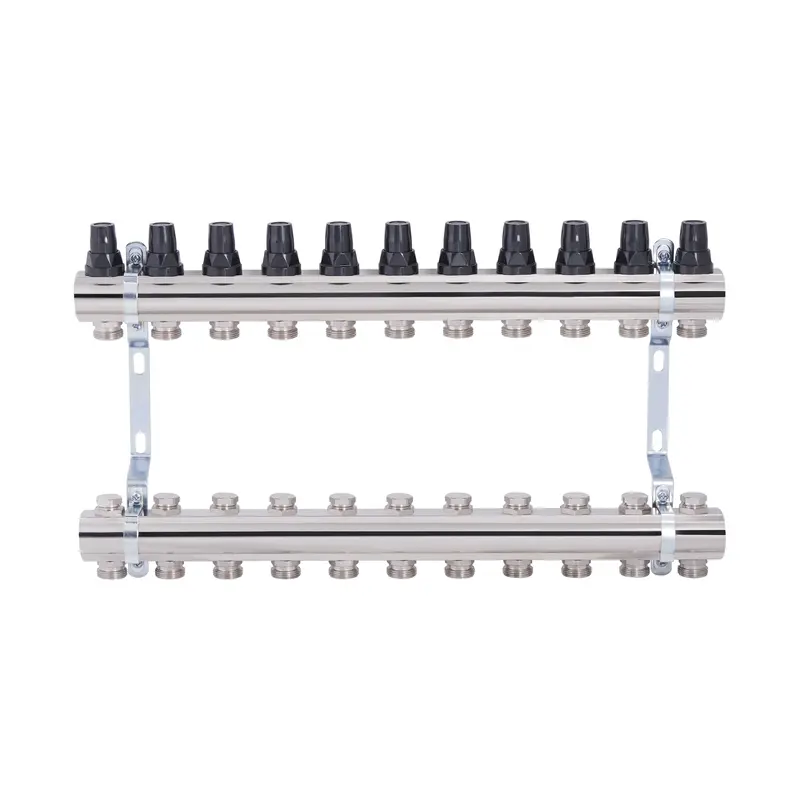 Колектор терморегулювальний SD Forte 1 "на 11 виходів виготовлений із високоякісної нержавіючої сталі. Розмір підключення виходів на контури 3/4". Гребінці такого типу зазвичай встановлюють в системах радіаторного опалення, рідше – для теплої підлоги. Основний матеріал виготовлення - латунь, покриття - хромоване. Форма кронштейнів робить зручною встановлення колектора в ніші на стіні або в колекторній шафі, приєднання трубопроводів інженерної системи обігріву.