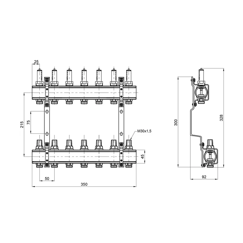 Колектор з витратомірами SD Forte 1" на 7 виходів зібраний на двох кронштейнах, які необхідні для кріплення до стіни або в колекторній шафі. Лінія подачі обладнана витратомірами, на зворотній балці встановлено термоклапани. Розмір під’єднань сервоприводів (не входять в комплектацію) — 30х1,5. Максимальна температура теплоносія на вході в колектор — 95 °C. Тиск в системі не повинен перевищувати 4 бари. Функція виробу — рівномірний розподіл тепла в петлях теплої підлоги.