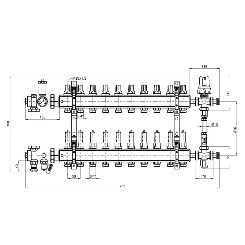 Колекторна група Icma 1" 10 виходів, з витратоміром №K0111