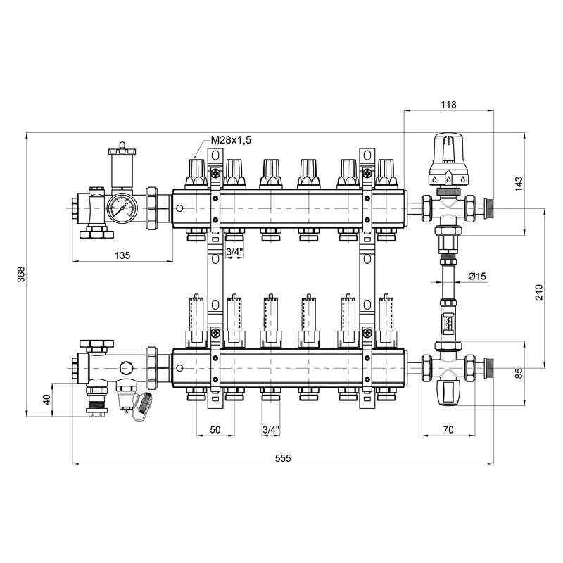 Колекторна група Icma 1" 6 виходів, з витратоміром №K0111