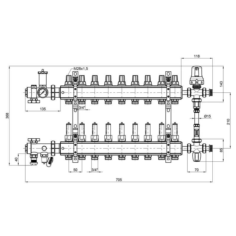 Колекторна група Icma 1" 9 виходів, з витратоміром №K0111