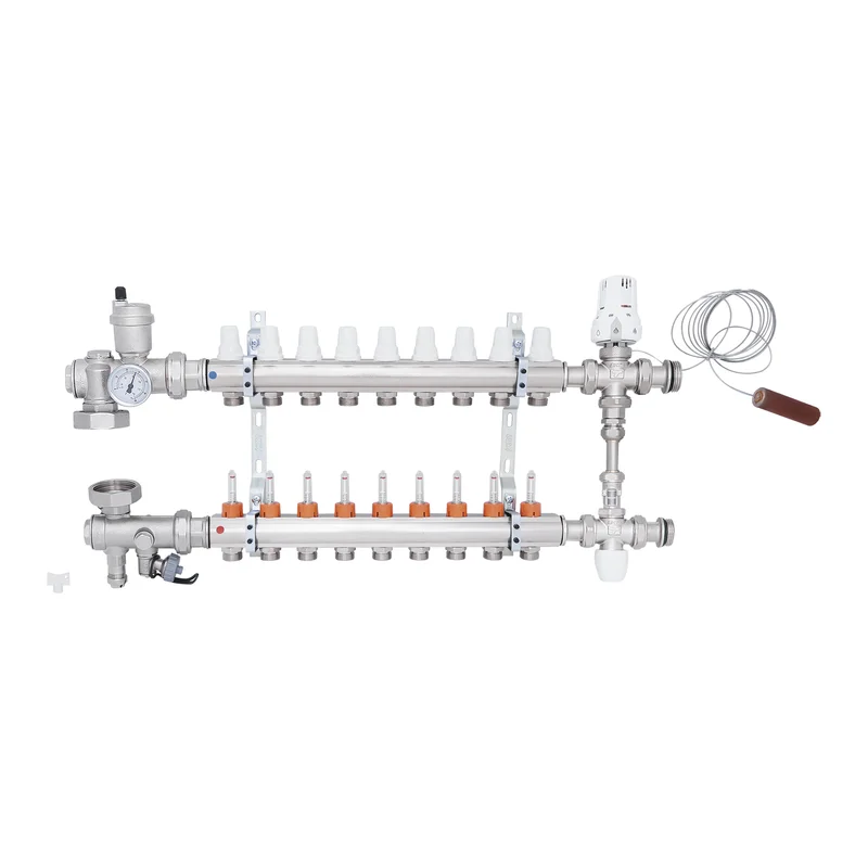 Колекторна група призначена для розподілу теплової енергії в системі "тепла підлога". Дана установка застосовується в системах опалення підлоги, підключених до високотемпературного котла. Колекторна група дозволяє розподіляти первинний теплоносій при високій температурі у вторинному контурі із заданою температурою. Теплоносій надходить з первинного контуру, де температура вища, щоб забезпечити правильну роботу системи теплої підлоги.