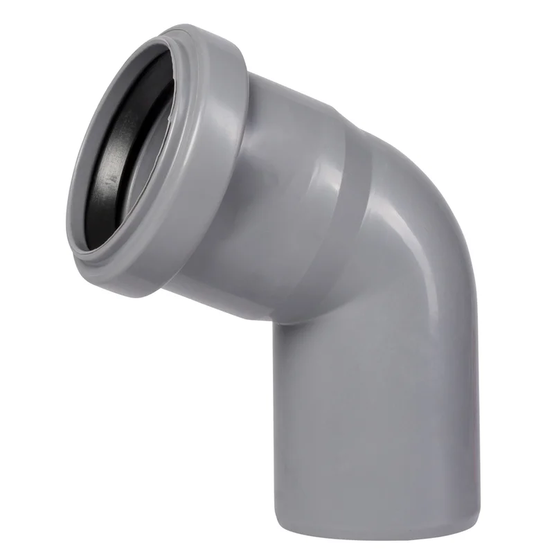 Отвод канализационный (колено) предназначен для изменения поворота канализационного трубопровода на угол 30, 45, 87 градусов транспортирующих хозяйственно-фекальные стоки внутри жилых, административных, производственных зданий.