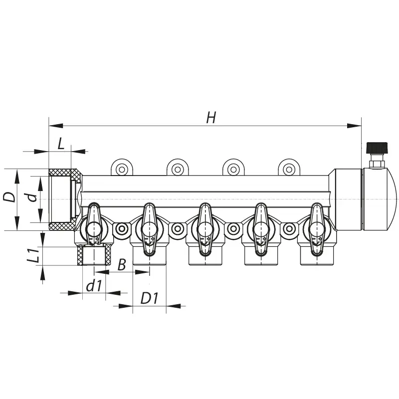 Коллектор 5-way с шаровыми кранами (40x20) PPR Koer K0172.PRO (KP0222)