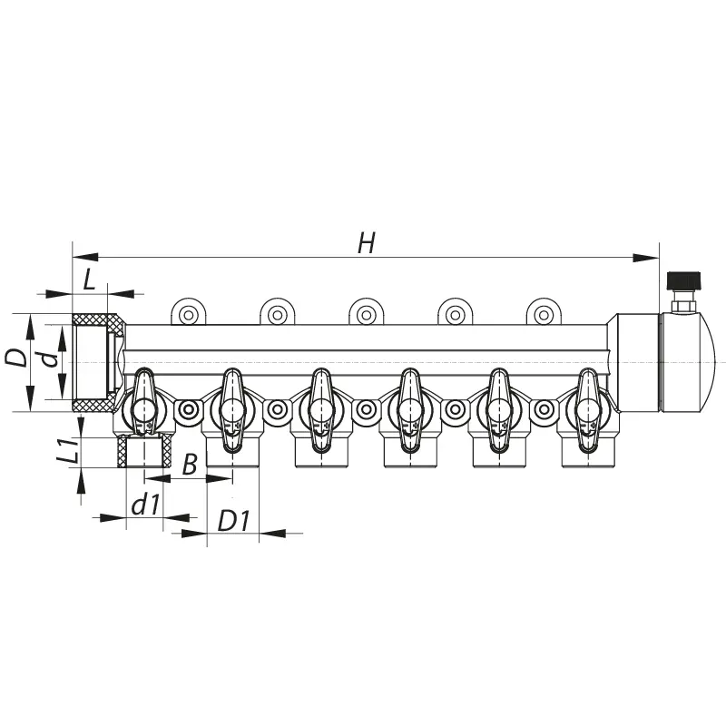 Коллектор 6-way с шаровыми кранами (40x20) PPR Koer K0173.PRO (KP0223)
