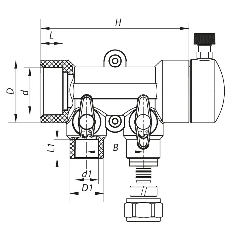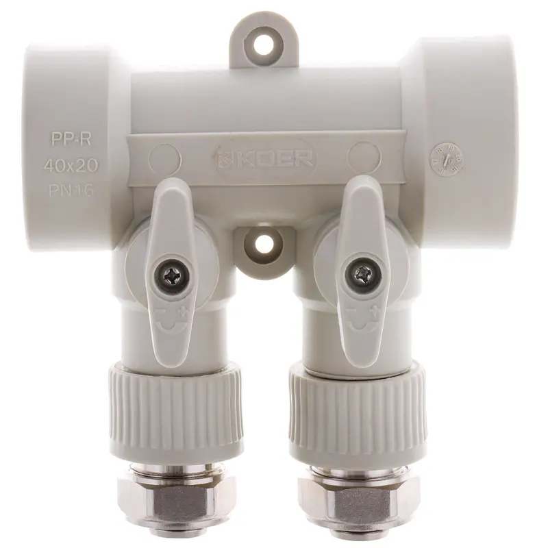 Коллектор распределительный 2-way с фитингом Koer K0190.PRO - 40x20 PPR (KP2555)