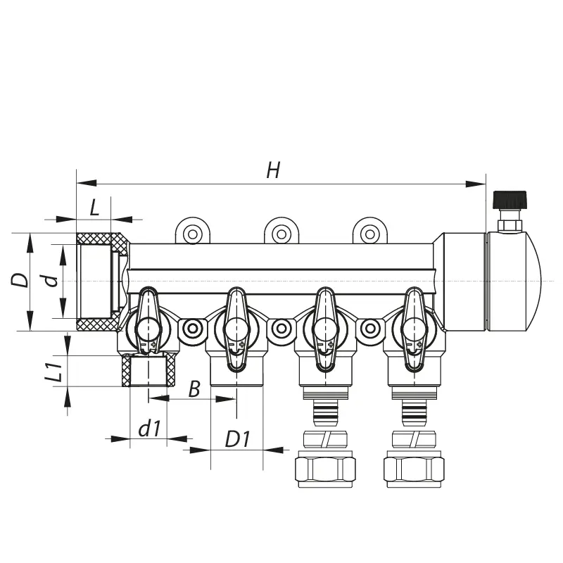 Коллектор распределительный 4-way с фитингом (40x20) PPR Koer K0192.PRO (KP2557)