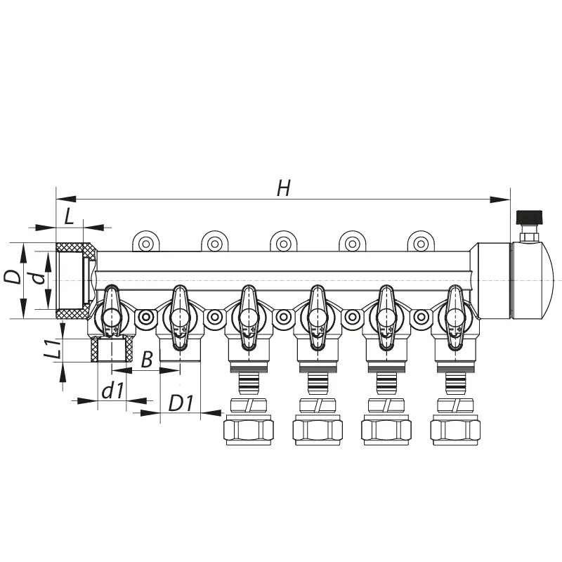 Коллектор распределительный 6-way с фитингом (40x20) PPR Koer K0194.PRO (KP2559)